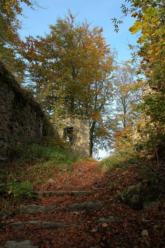 [ Der Frankenweg verläuft direkt an der Burgruine Leienfels vorbei ]